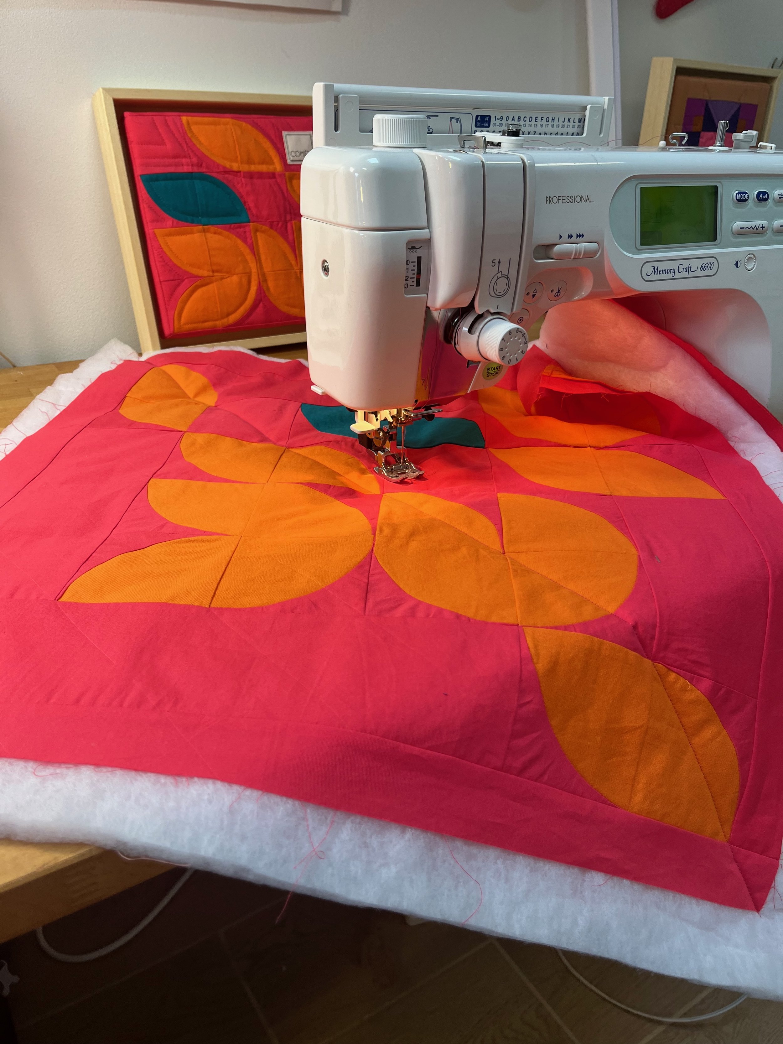 Le quilting est l'étape magique qui suit le patchwork. C'est le moment où je superpose les trois épaisseurs pour les "quilter", c'est-à-dire les surpiquer ensemble. C’est ce travail au fil qui donne tout son relief, son moelleux et son caractère final au projet.